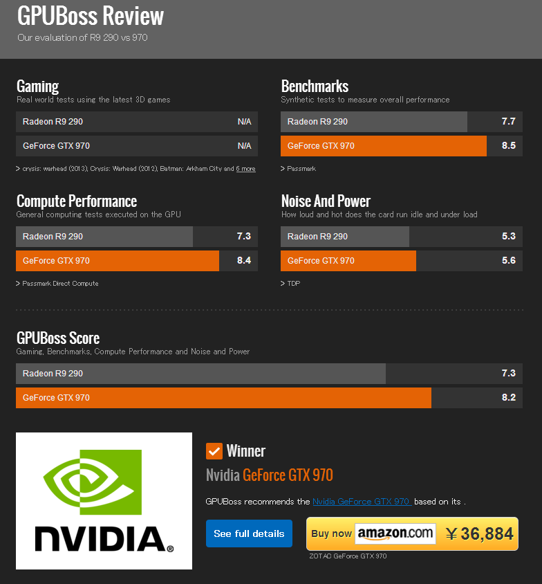 GPU、CPU、SSDの性能が簡単に比較できるサイトです。